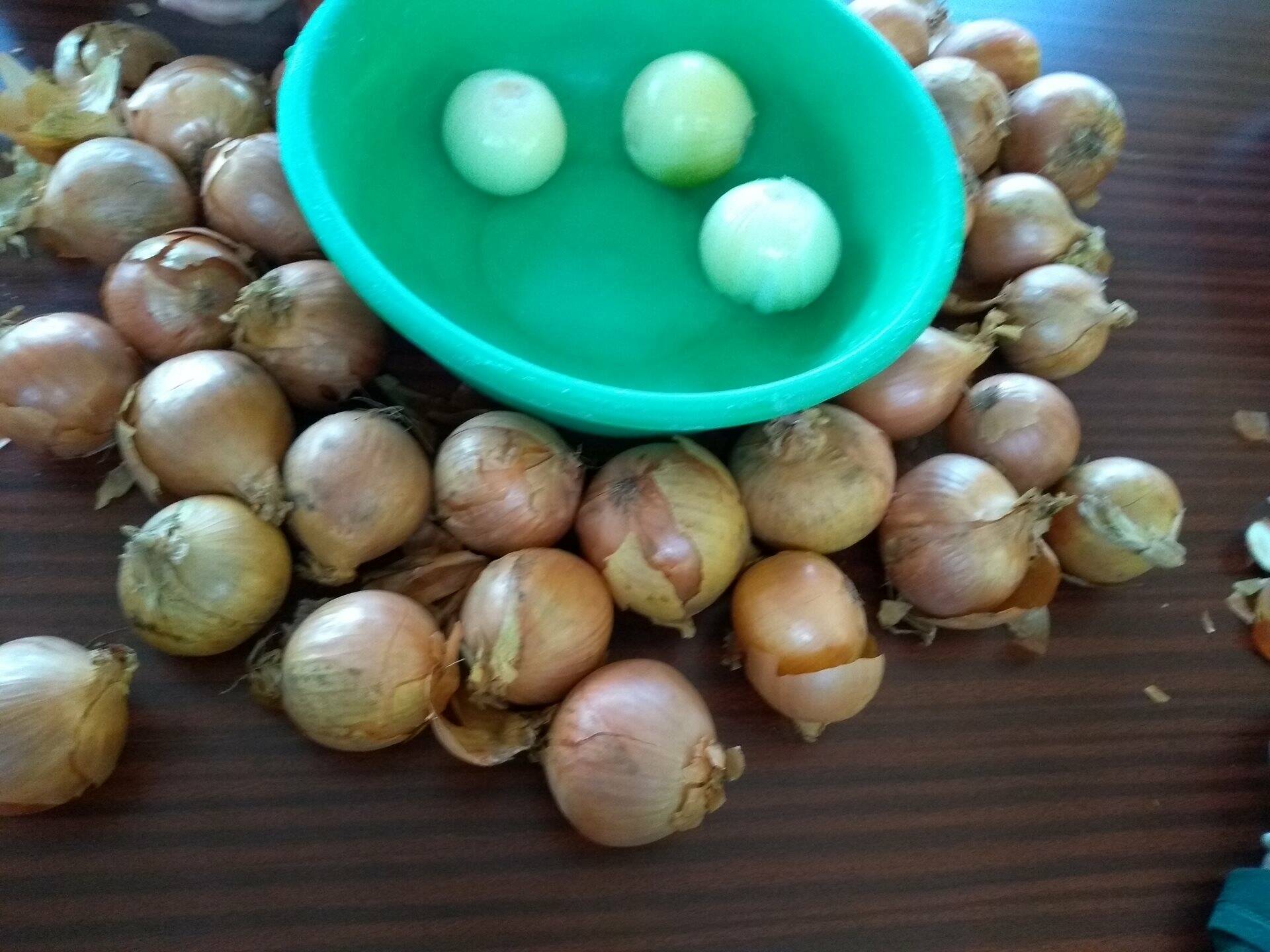 Vždy ochotně pomůžeme našim kuchařkám oloupat cibuli.