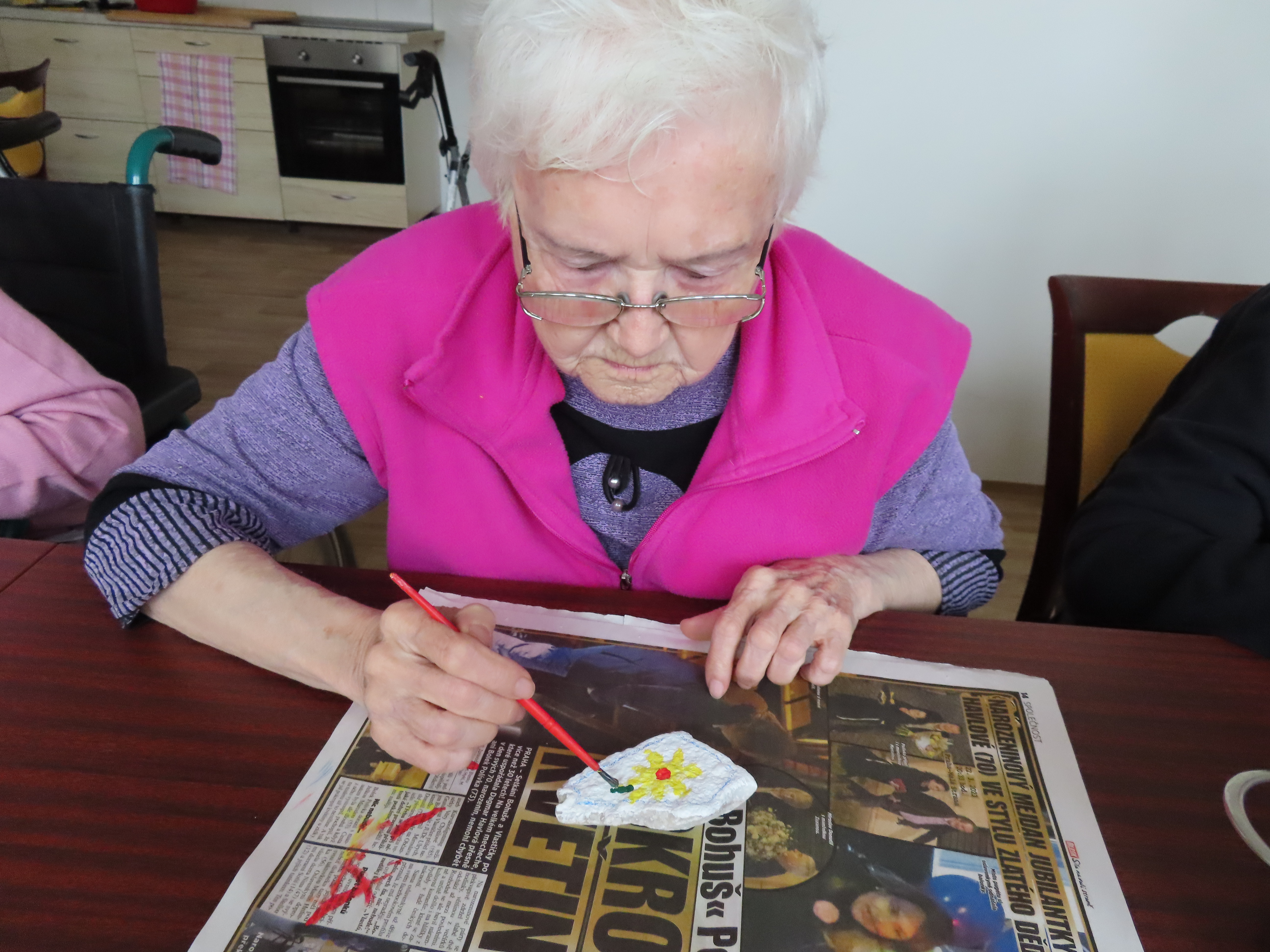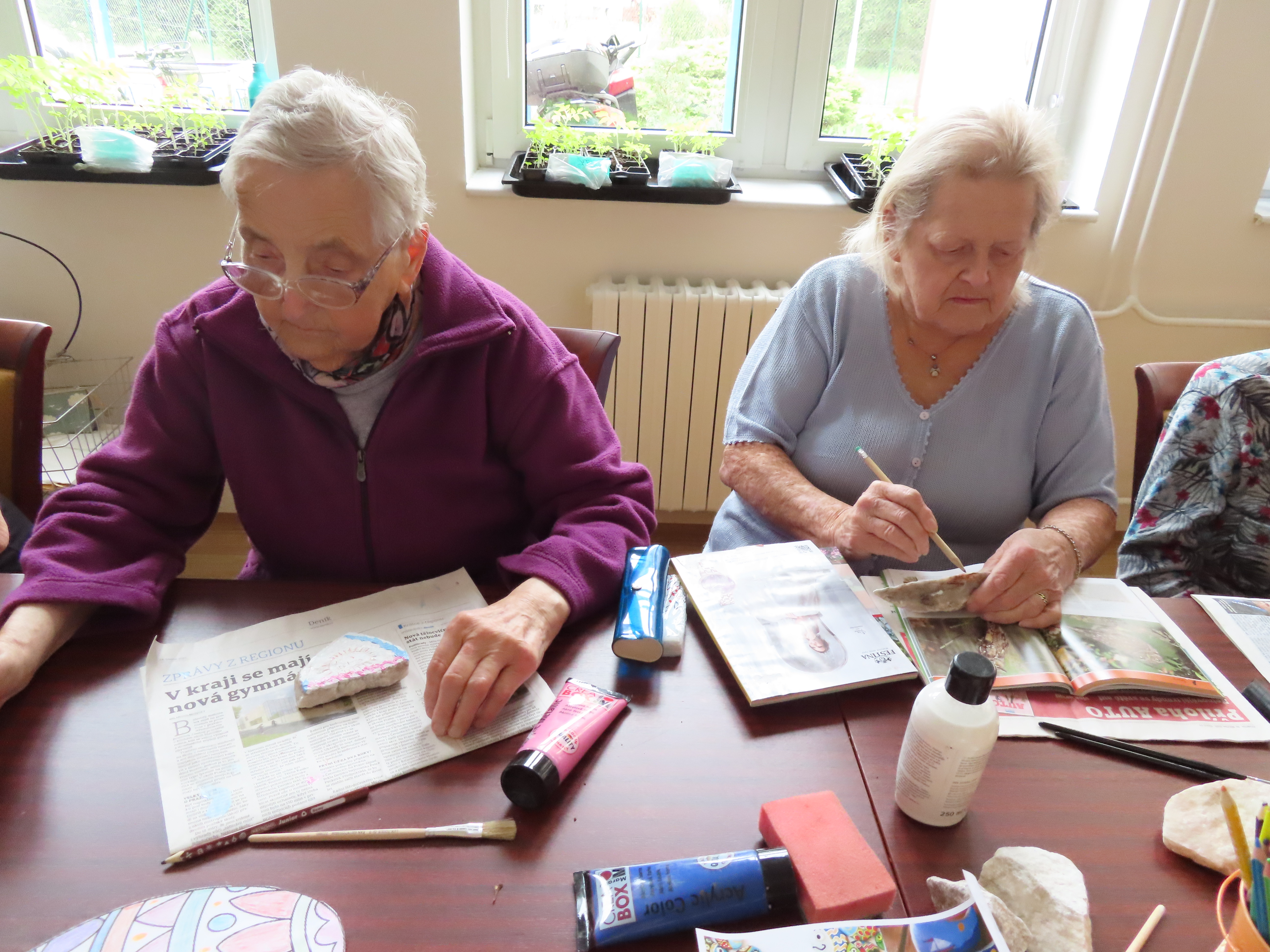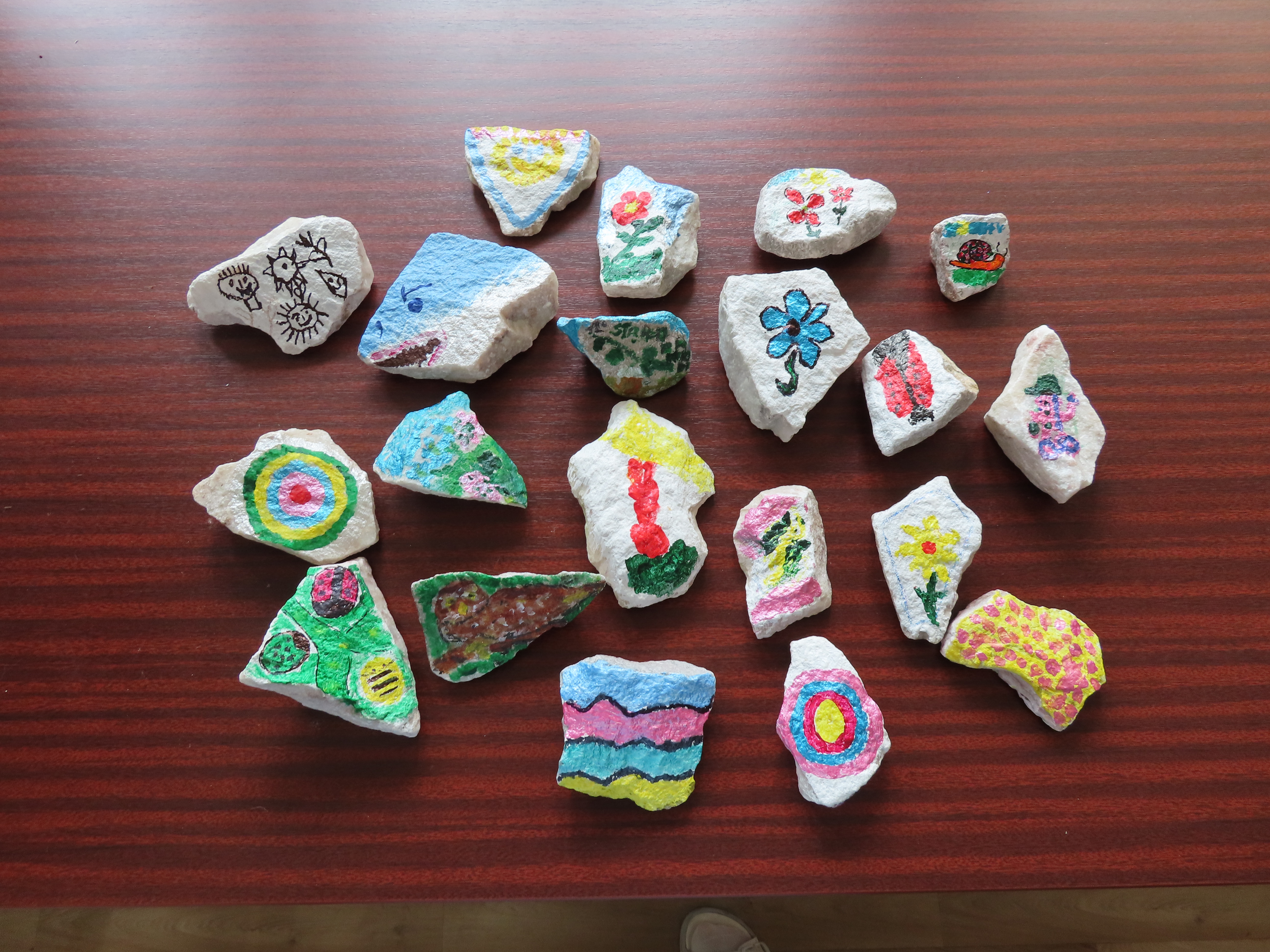 Ráno jsme si protáhli tělo s Péťou a pak jsme se vrhli na kreativní malování na kameny.