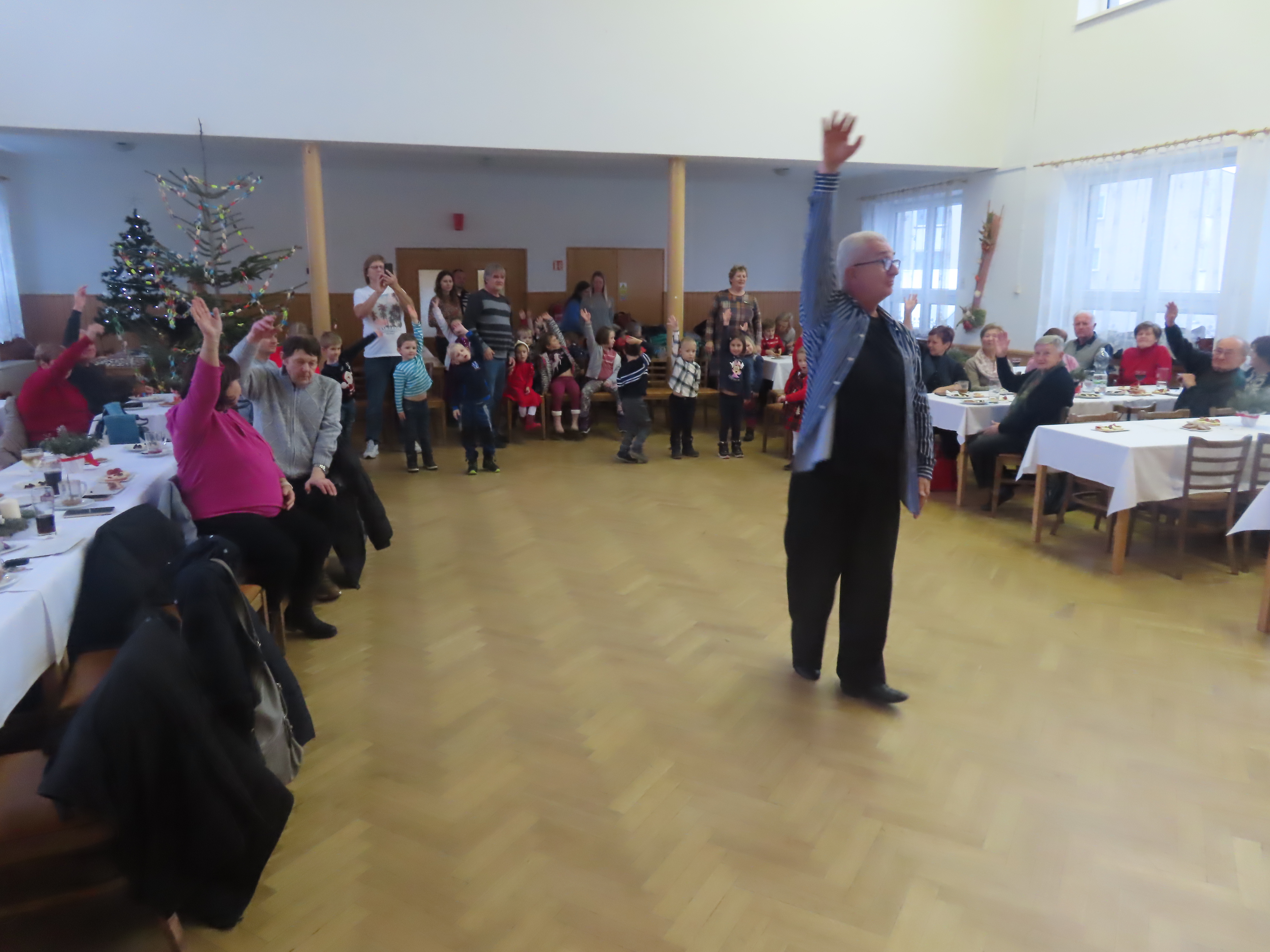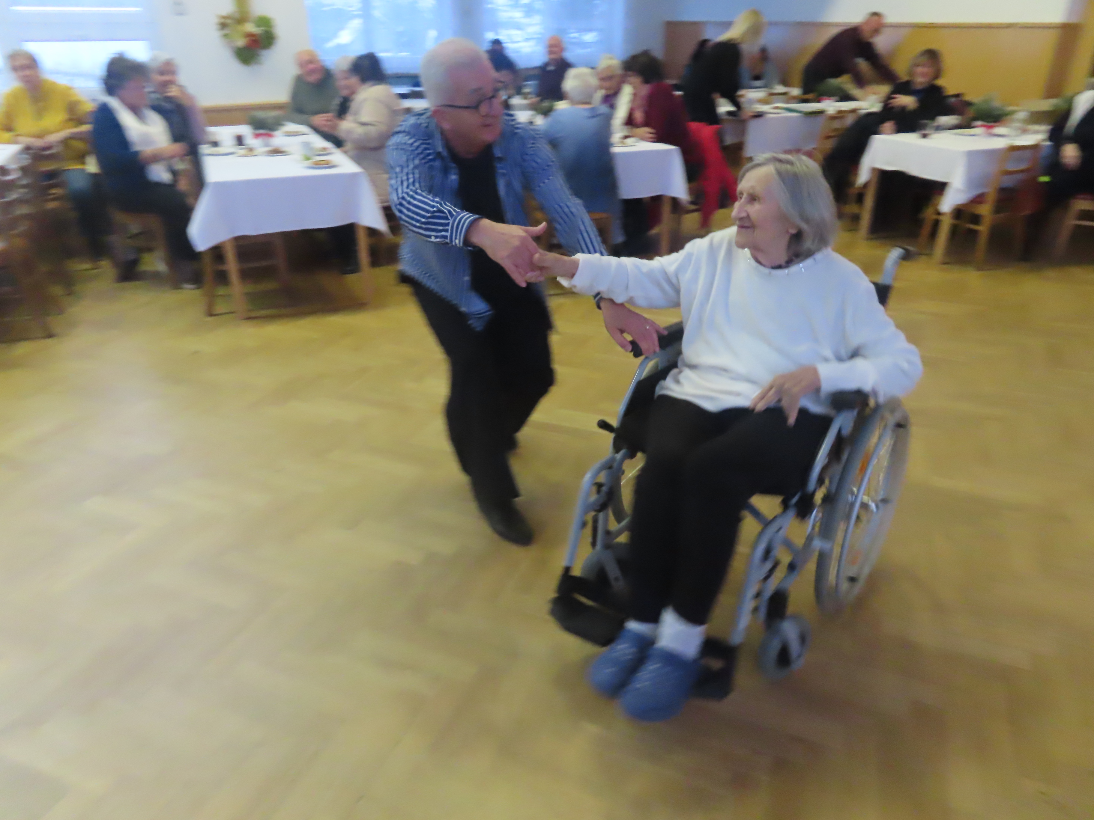 Taneční mistr pan Petr Veleta roztančil celý sál včetně klientů na vozíčku.