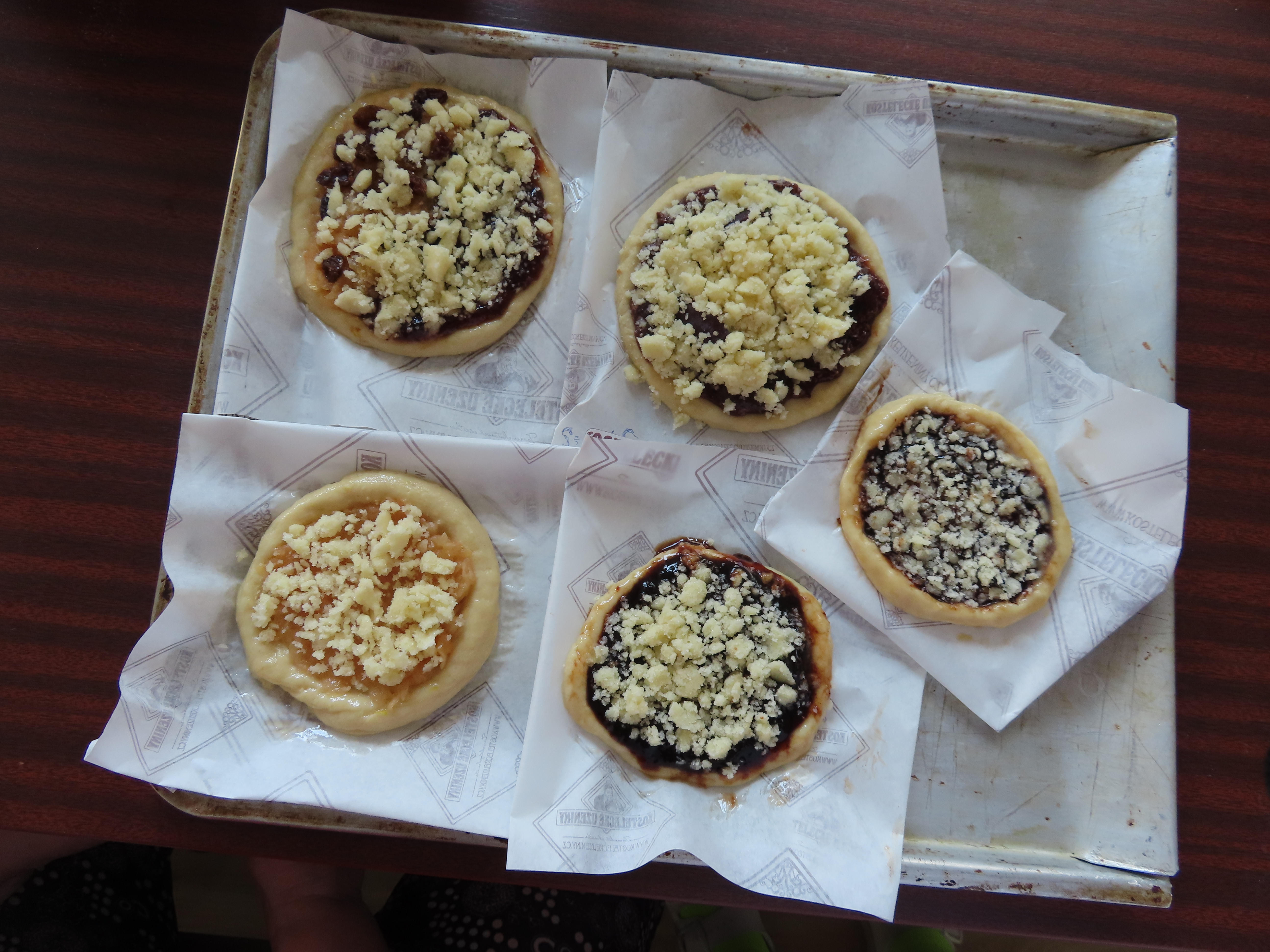 Rádi pečeme a vaříme. Dnes jsme si upekli kynuté koláče s povidly nebo jablky.