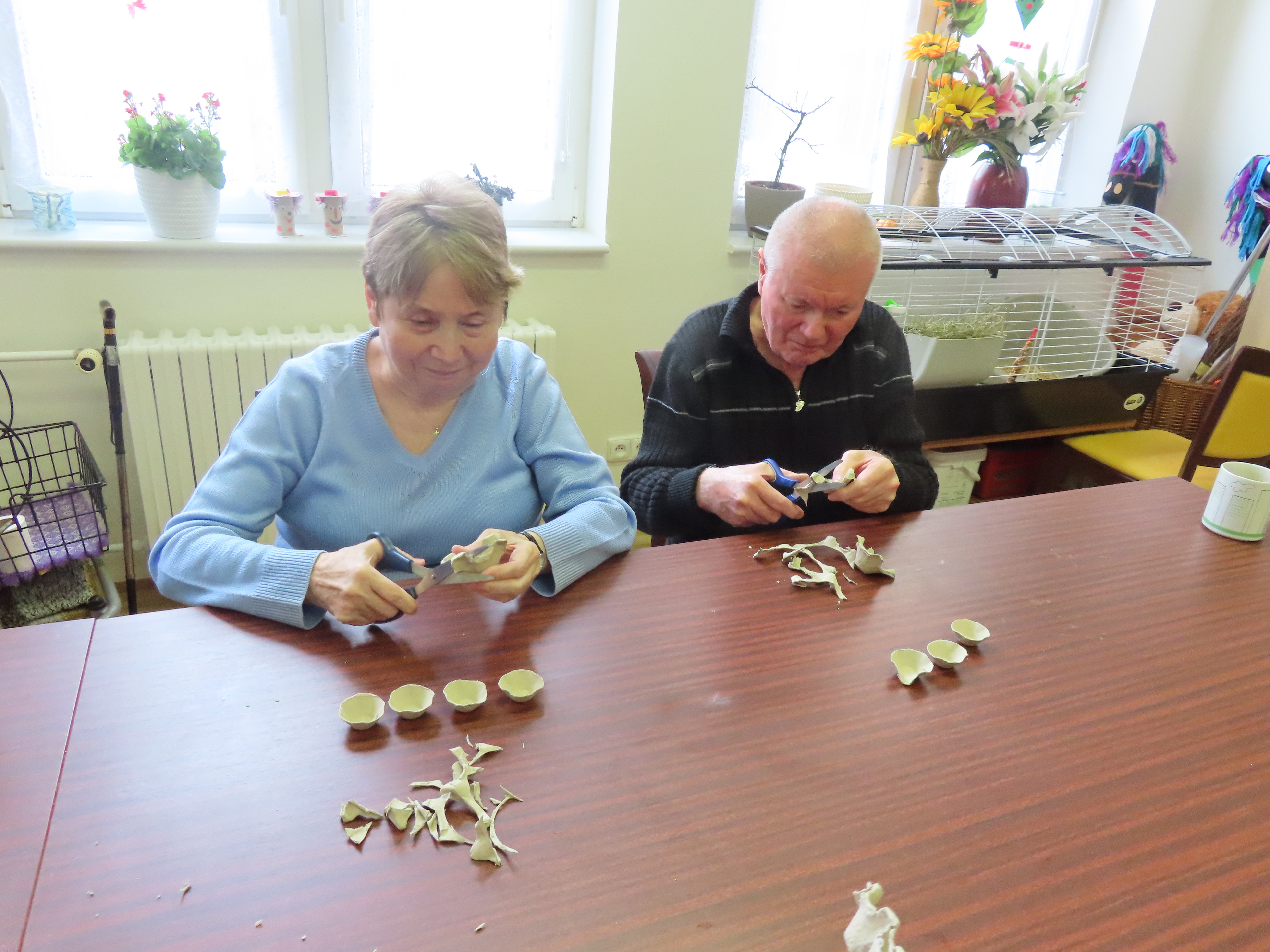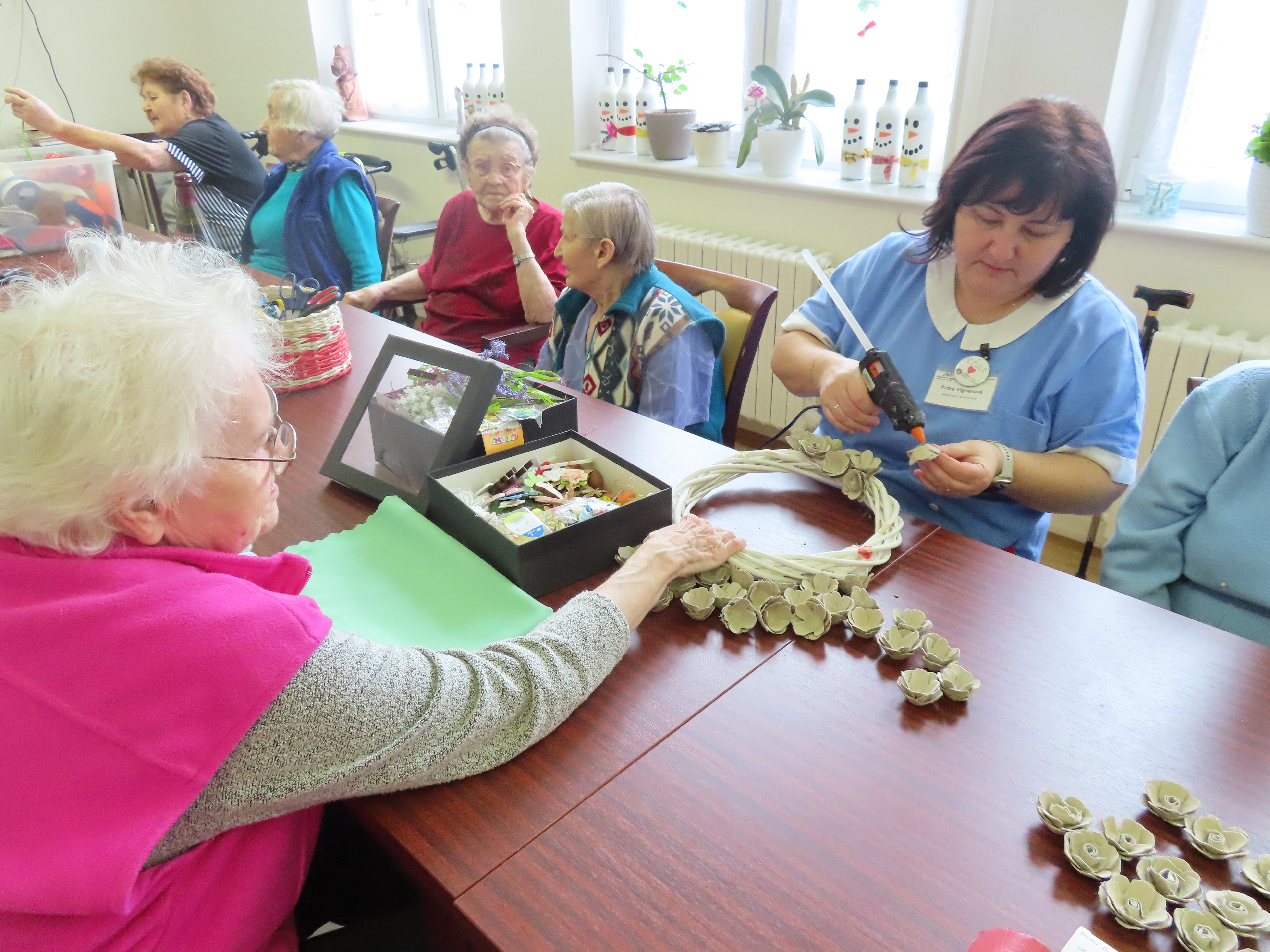 Tvoření věnečku pro radost z plata od vajec.