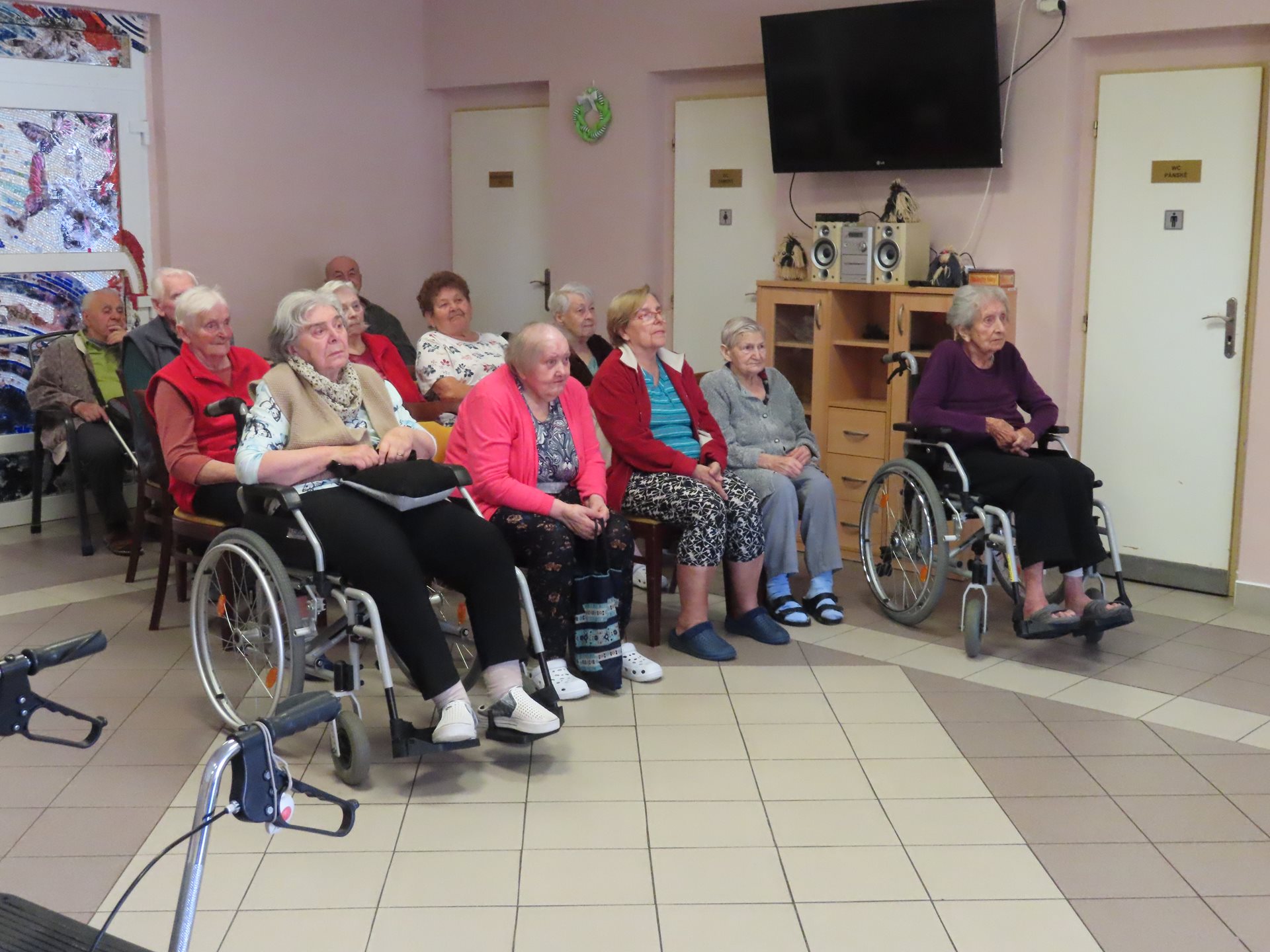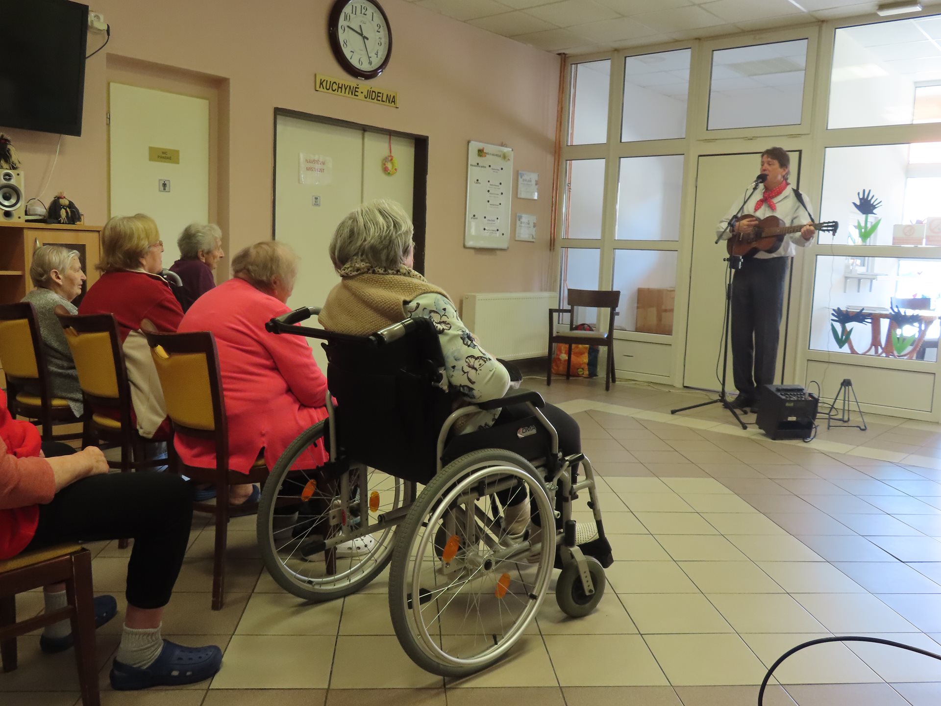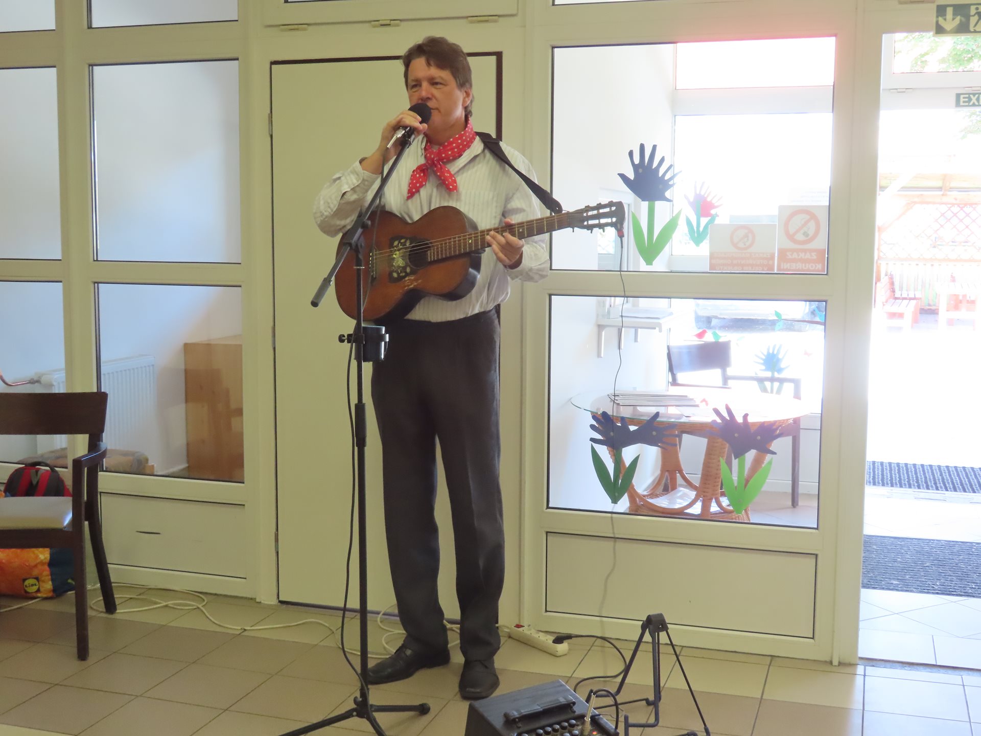 Bývalý člen skupiny Patrola Šlapeto pan Pecháček nám zazpíval lidové a staropražské písně. Klienti si s chutí zazpívali známé melodie.