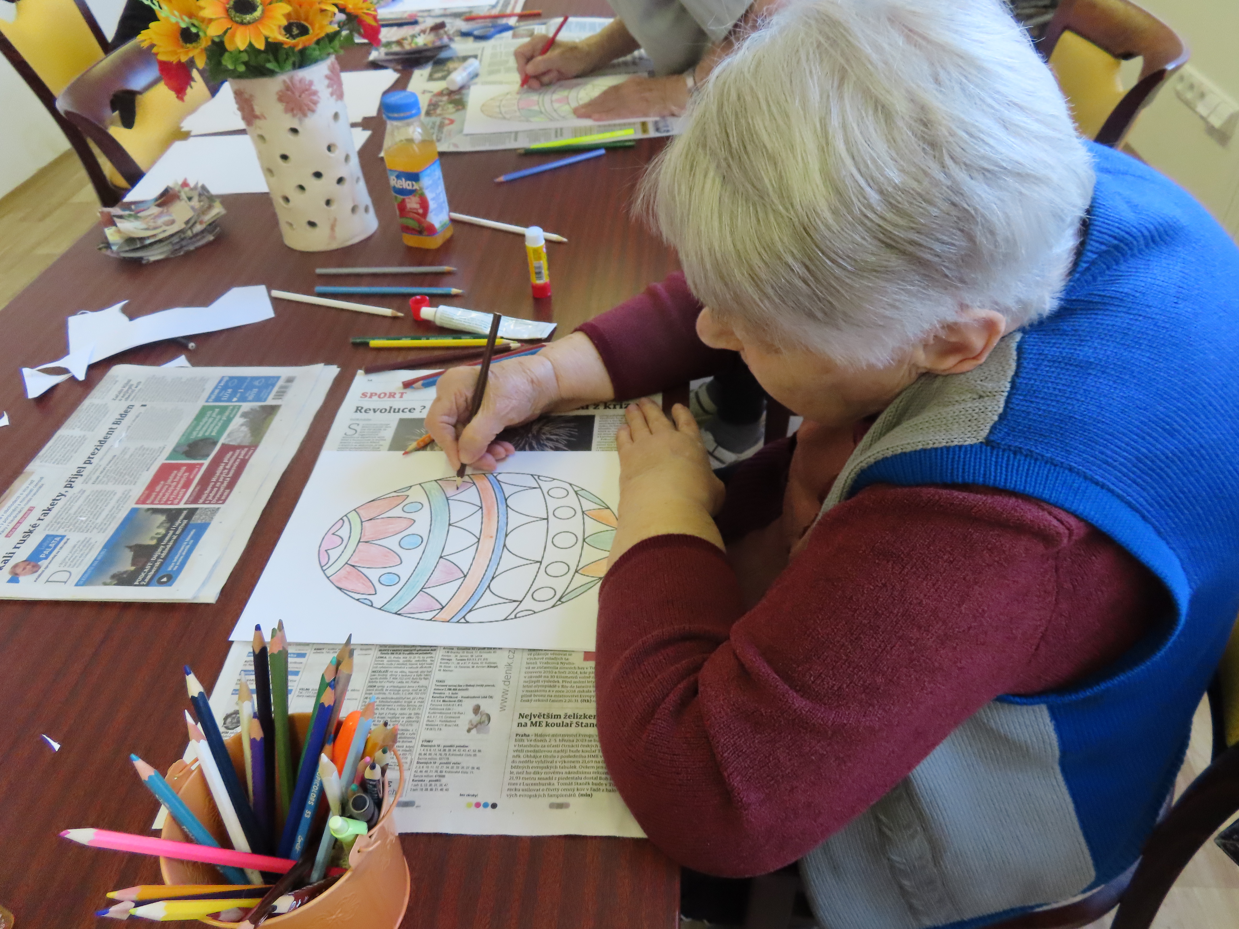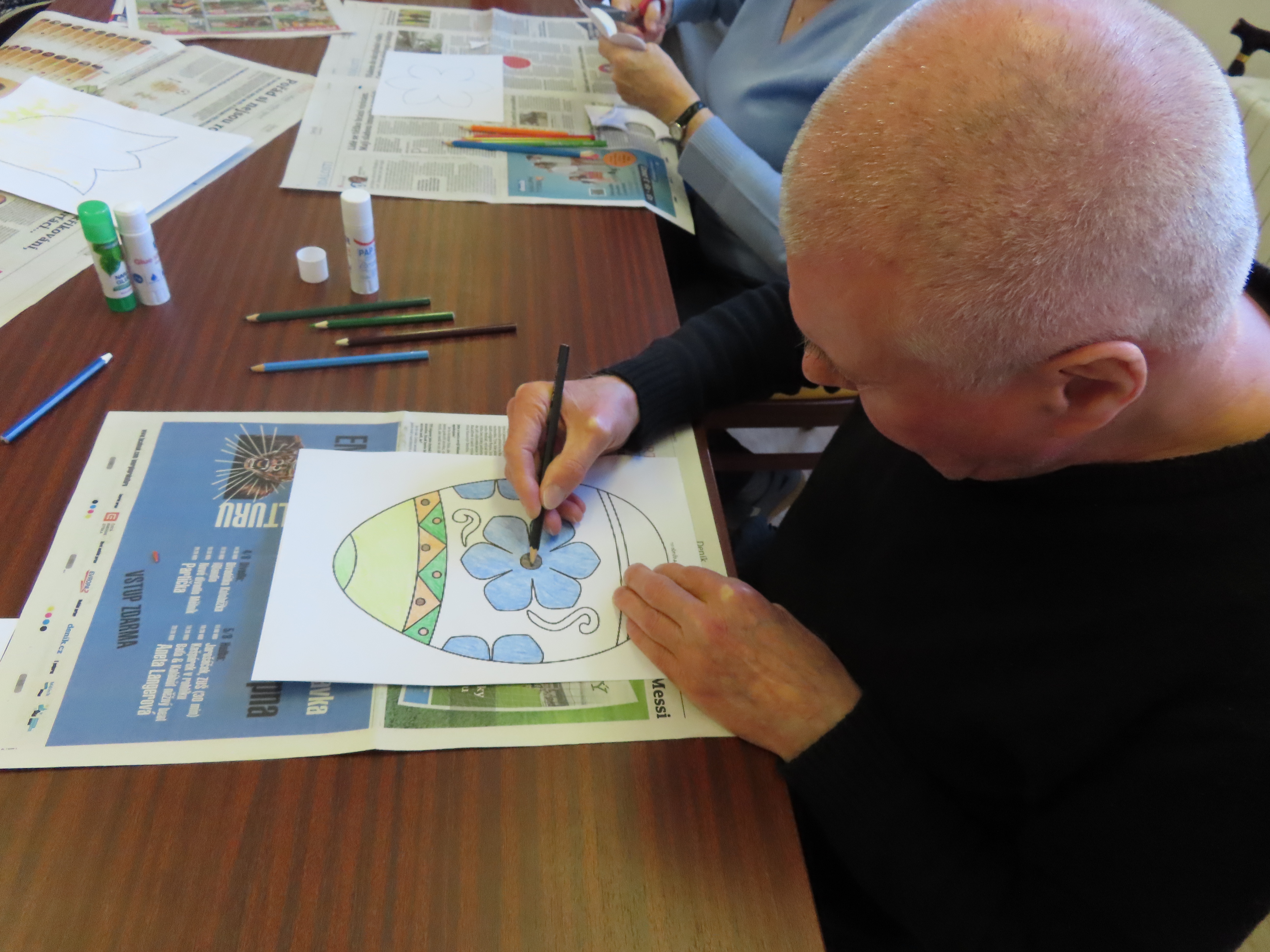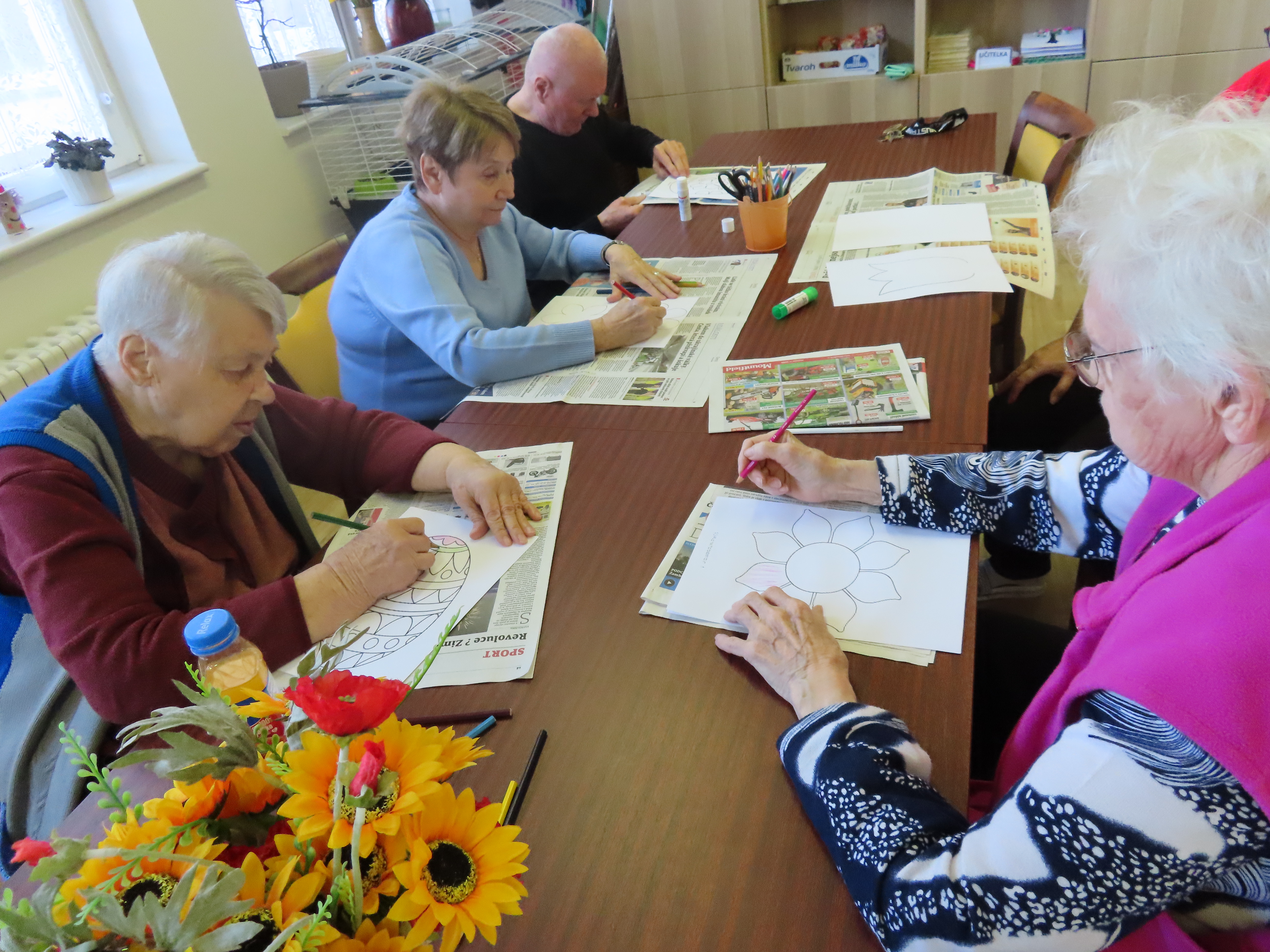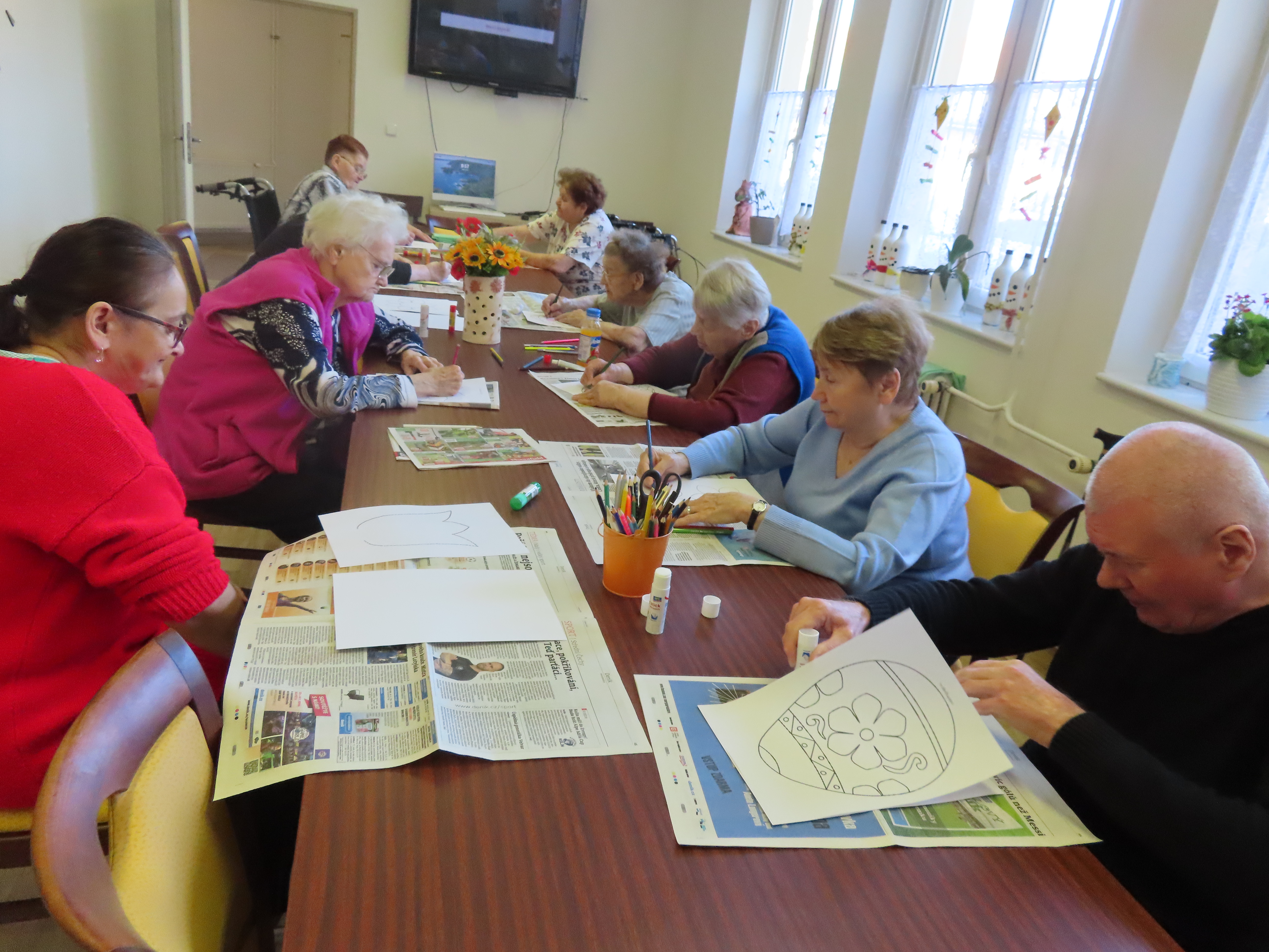 Výroba kytek a vajíček z papíru.