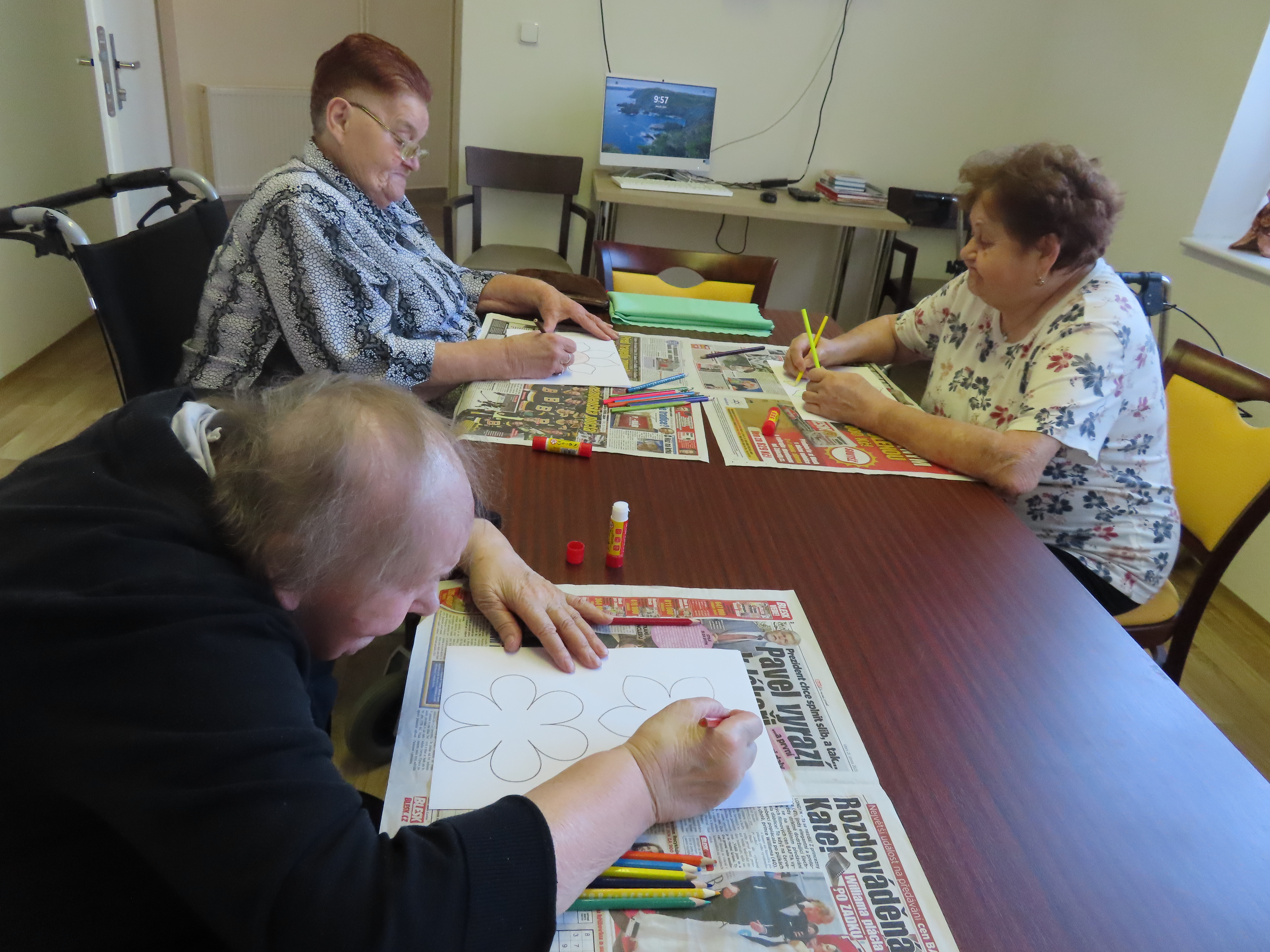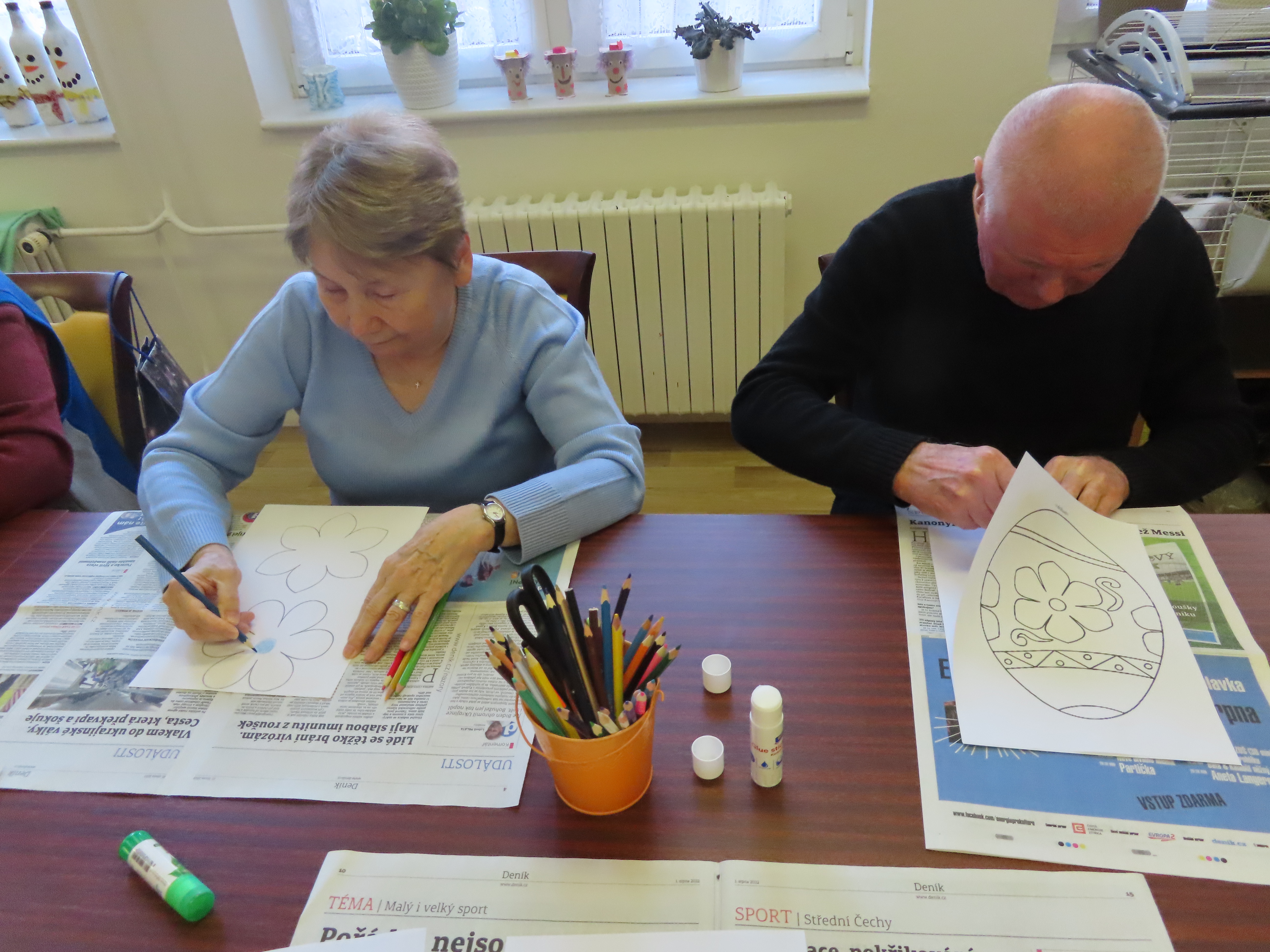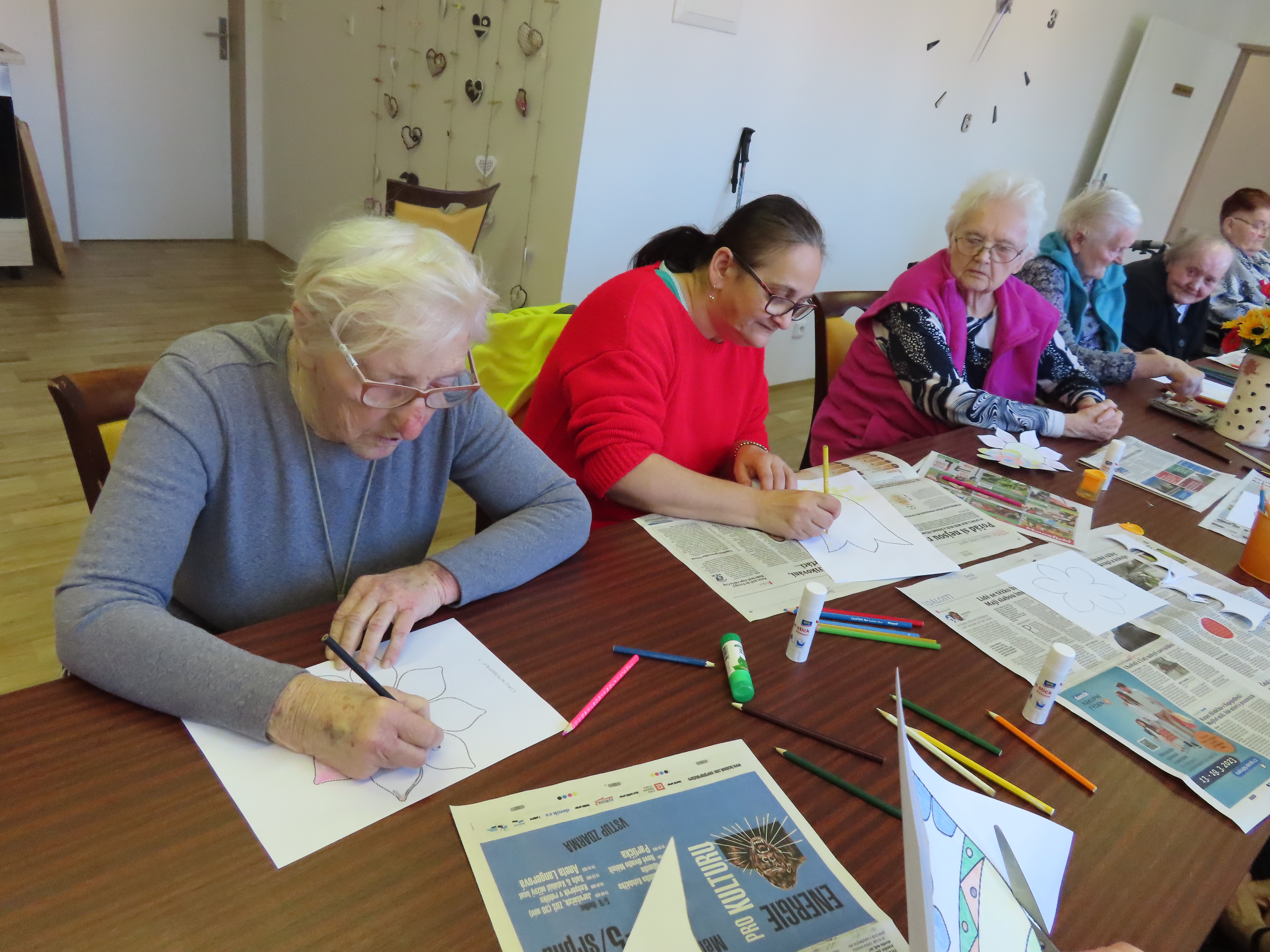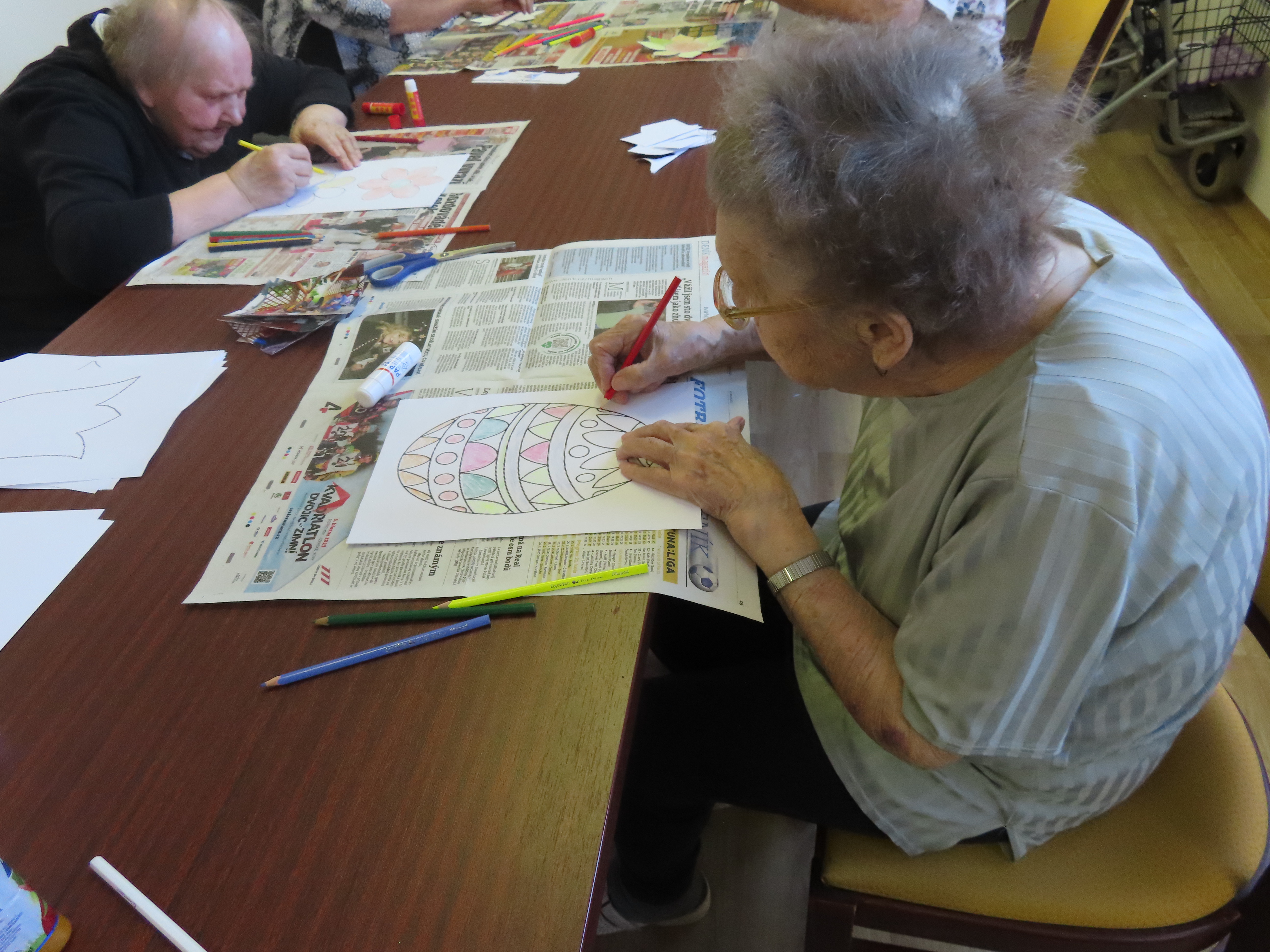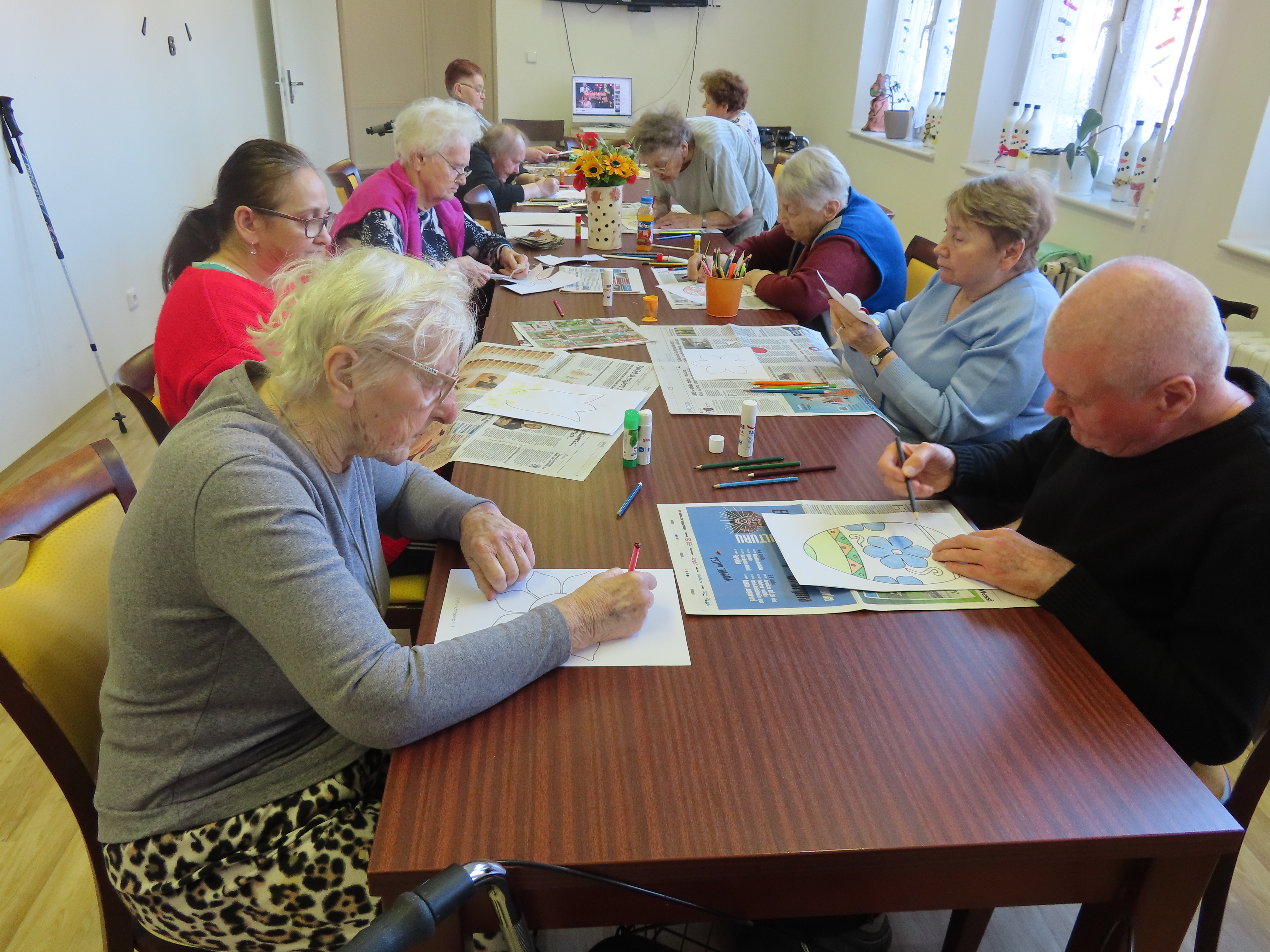 Výroba kytek a vajíček z papíru.